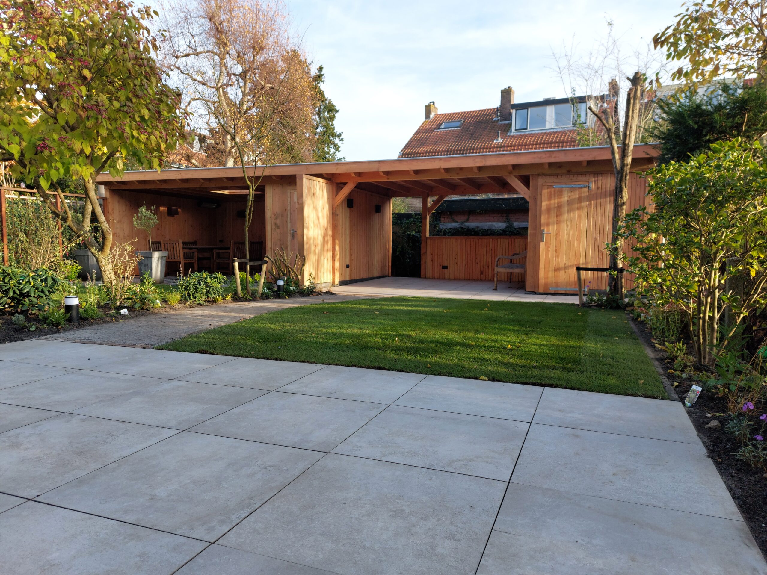 Onze houten overkappingen zijn FSC-gecertificeerd en we bestellen materialen precies op maat om restafval te beperken. Zo dragen we bij aan een duurzame tuin.