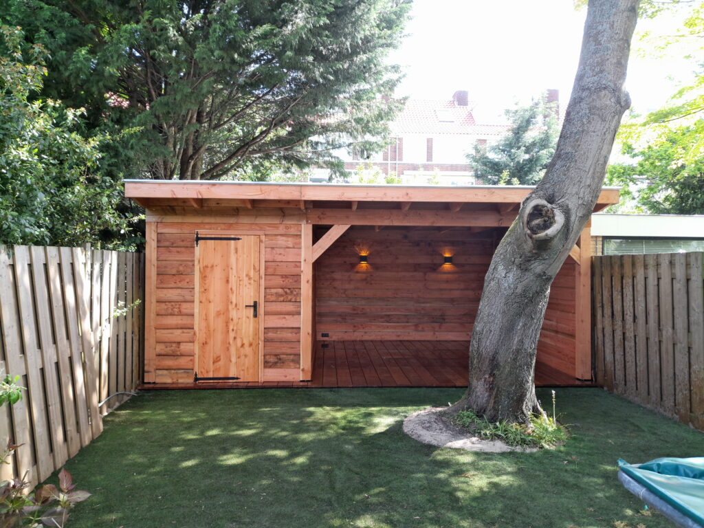 Bij Wijnveldt & Van Kesteren vindt u een uitgebreid assortiment maatwerkoplossingen die perfect aansluiten op uw tuinwensen. Naast diverse soorten overkappingen leveren wij ook tuinhuizen met overkapping en tuinschuren met overkapping. Deze multifunctionele ruimtes zijn ideaal voor het opbergen van tuingereedschap, fietsen of tuinmeubelen, maar kunnen ook dienen als praktische en stijlvolle uitbreiding van uw leefruimte buiten.
