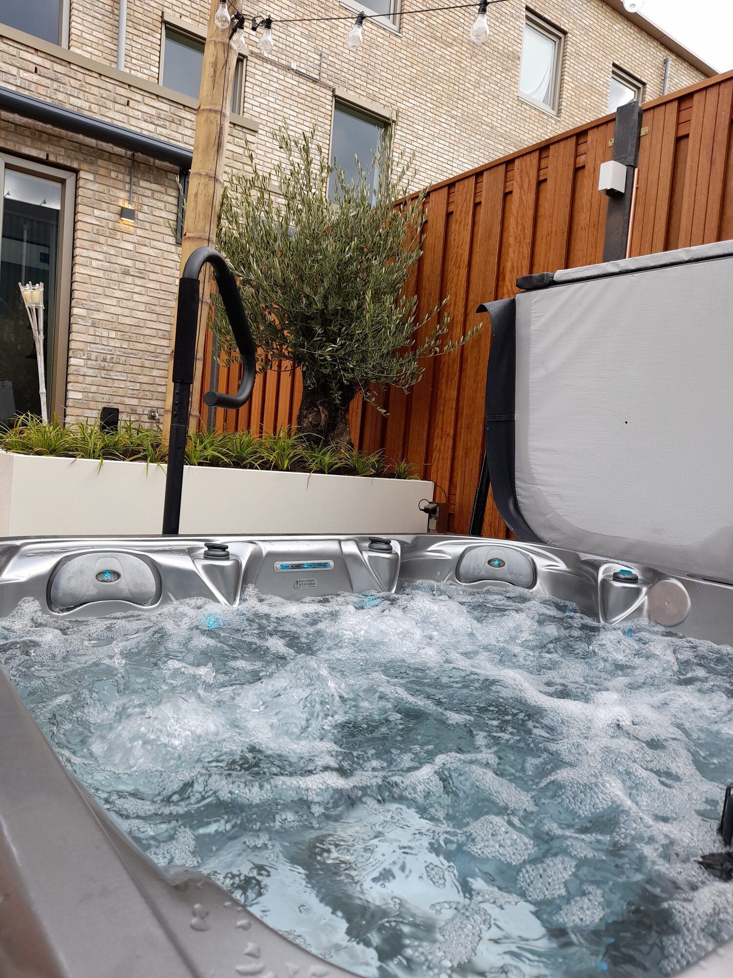Jacuzzi geïntegreerd in de tuin voor ontspanning en comfort