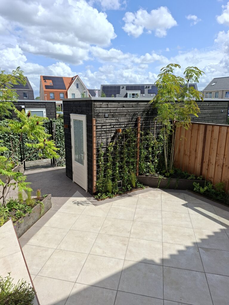 Voor deze klant in Voorburg hebben we een tuin ontworpen waarin comfort en gebruiksgemak centraal staan. De wens was een onderhoudsvriendelijke tuin met duidelijke zones voor zitten, lopen en groen. We kozen voor keramische tegels, verhoogde borders en een logische indeling die past bij het dagelijks gebruik van de bewoners.